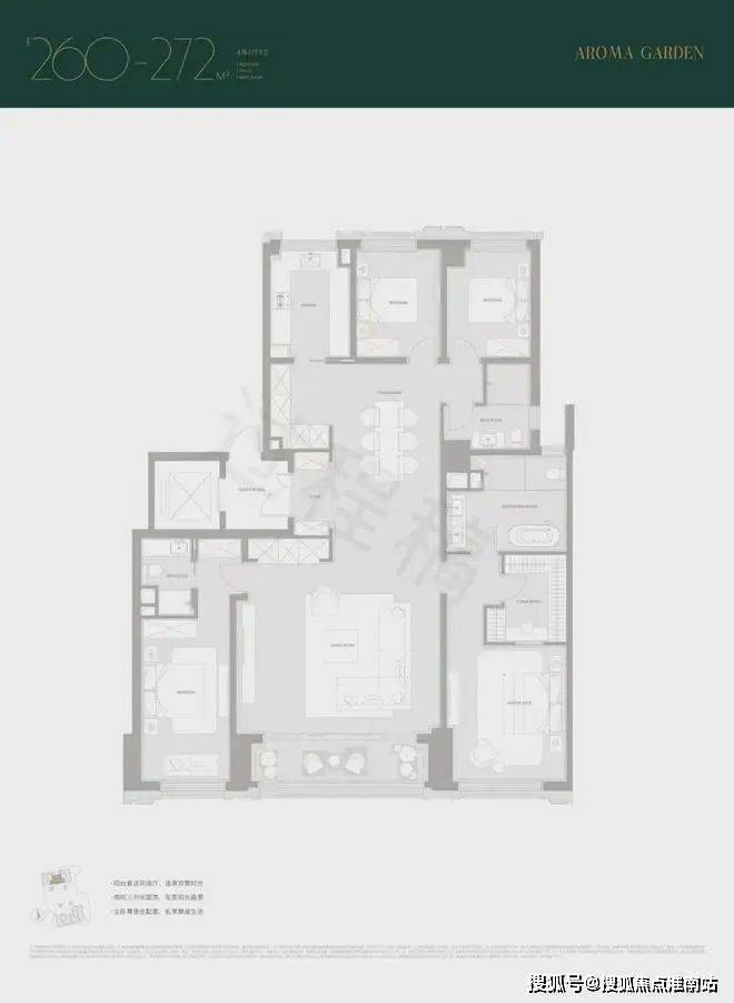 建面约260/272㎡,南向双套房,尤其主卧是豪华套房,带独立衣帽间,卫浴间含双台盆+淋浴+浴缸+马桶四件套。