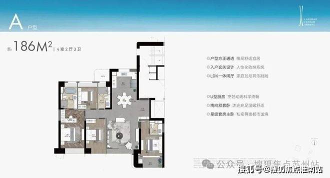 而186㎡户型通过改造,实现了LDK一体化布局,打破传统空间的界限,打造出全景式家庭社交主场。