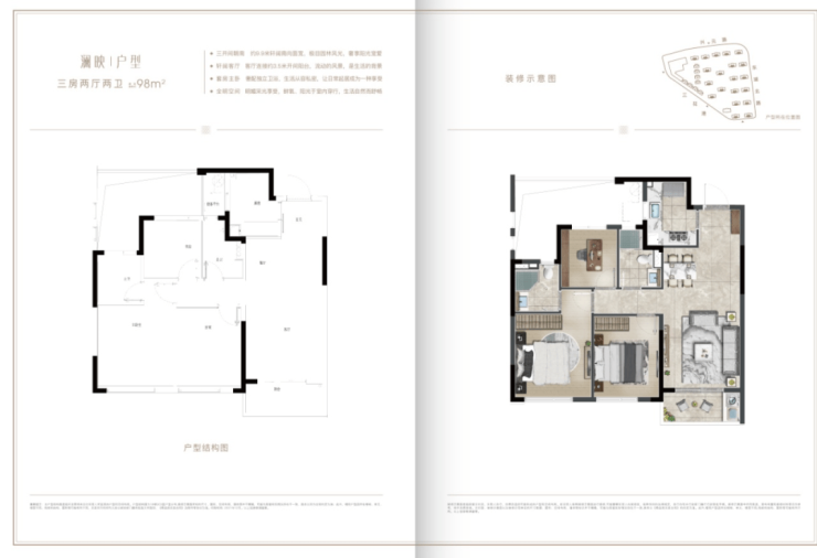 在售户型面积:97-118㎡三房/四房,得房率78-80%