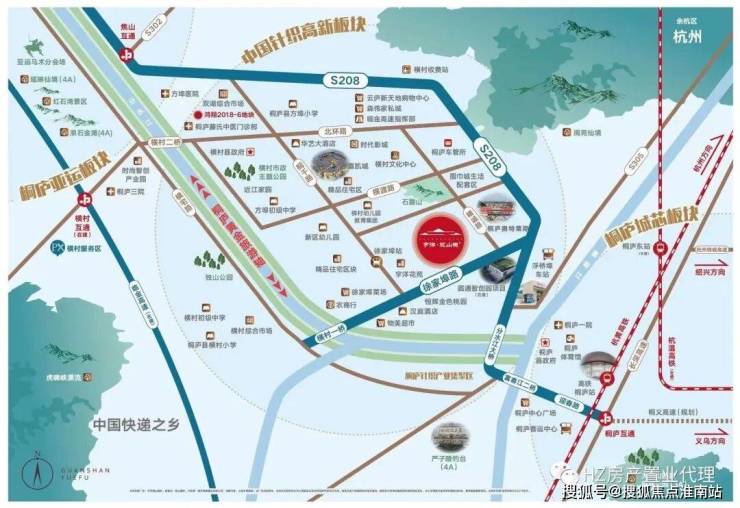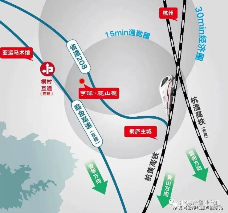 2 :区域 助推融杭先锋军桐庐2022年迎来“双高铁时代”,一举成为环杭要塞城市,并入杭州组团发展模块,更有省道208、临金高速(在建)串联同心发展,交通的多元化让桐庐与杭州市区,及其他城市的交流增添无限可能。
