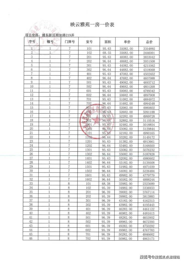 项目一房一价表▼