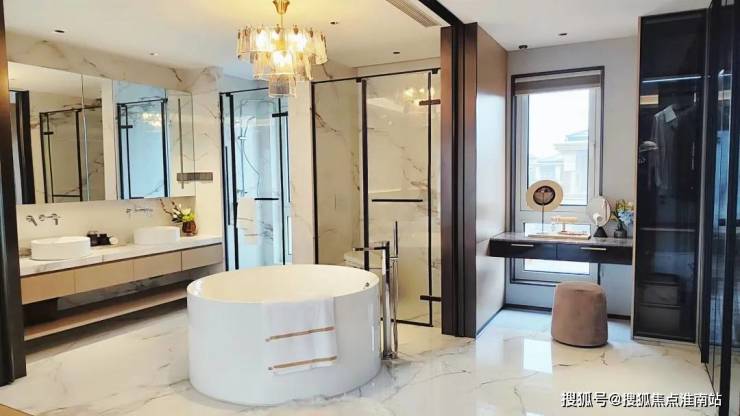 三层的空间尺度就更奢侈了,一整层都是主卧,采光窗尺度震撼,可安排衣帽间+书房+浴缸+双台盆主卫的超级套房。