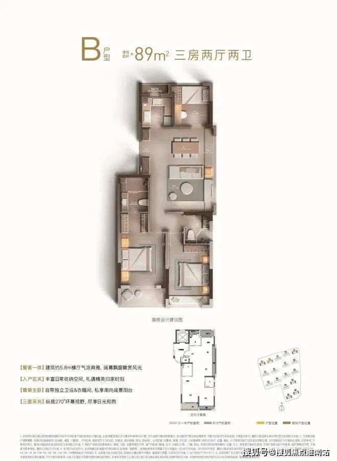 ⑤匠心户型合理规划布局,建面约89㎡刚需挚爱、建面约110㎡轻松进阶
