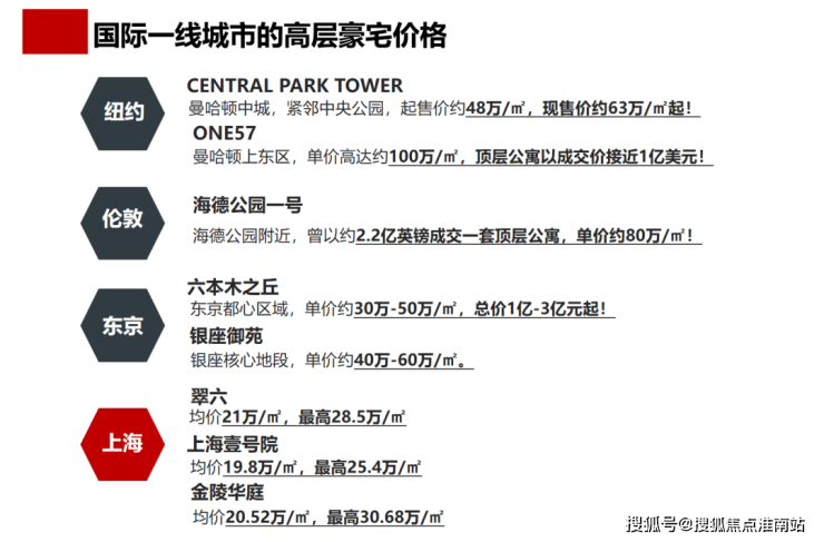 从绝对价格看,上海顶豪限价后均价约20万-30万/㎡,而纽约、伦敦、东京的顶豪均价已达60万-100万/㎡;