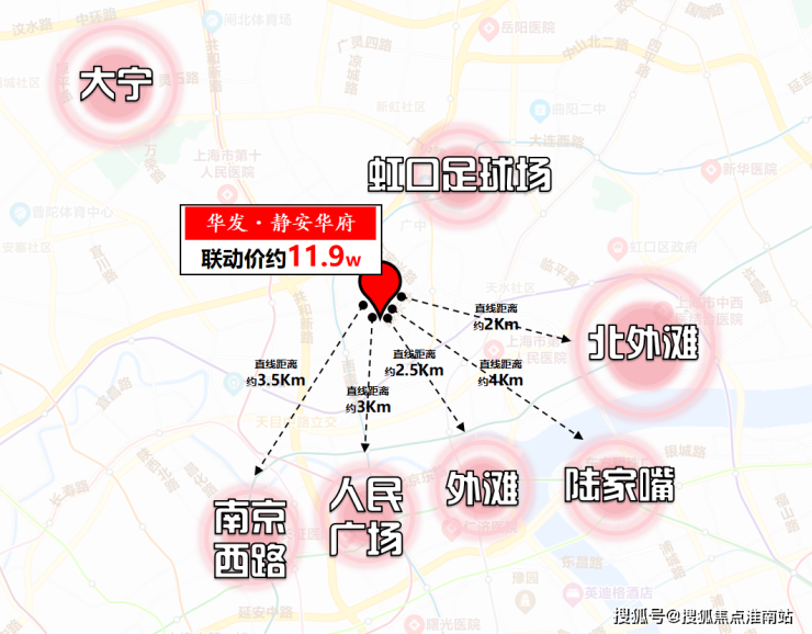 【华发·静安华府】直线距离人民广场约3公里,直线距离外滩约2.5公里,直线距离南京西路约3.2公里,直线距离陆家嘴也仅约3公里,直线距离北外滩更是仅约2公里。同时背靠虹口龙之梦商圈和大宁商圈。