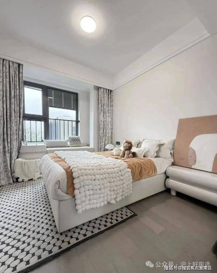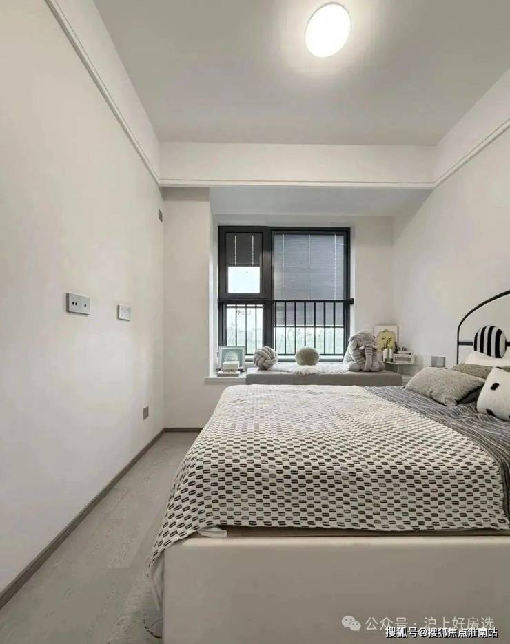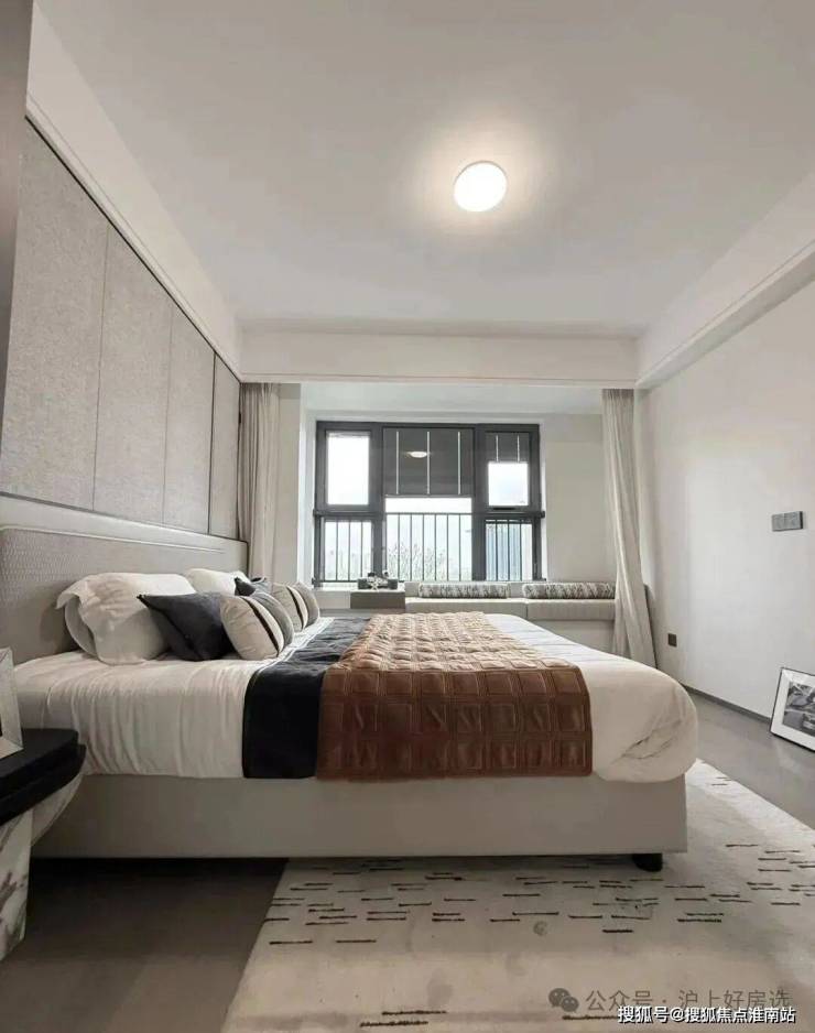 主卧床背景墙进行了软包处理,省去了业主未来二次装修的时间、精力跟成本,更好的给业主一个舒适且高颜值的家。