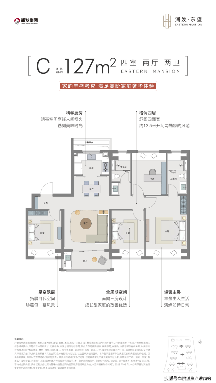 四开间朝南的建面约127㎡4房,位于小区的中间楼栋,数量不多。更加适合改善型的家庭。