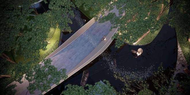 凤咏朝阳的北入口都很讲究,就像下一秒要拥人入怀的臂展——凤咏朝阳用浓烈的仪式感打造了两大主入口,用的都是星级酒店的做法,让我们不自觉就会调整入户前的情绪。重头戏更在大门之内,他们把江南四大名园的造园手法,运用到了凤咏朝阳这座「游园式大平层」的园区中——