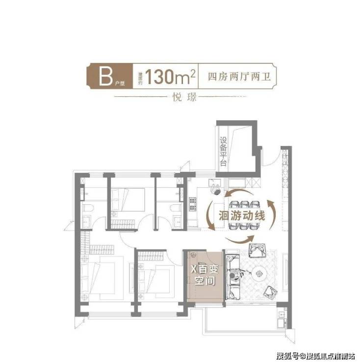 全景面宽+无界通厅+高附加值+收纳天花板,130㎡的面积直逼140㎡的尺度感!