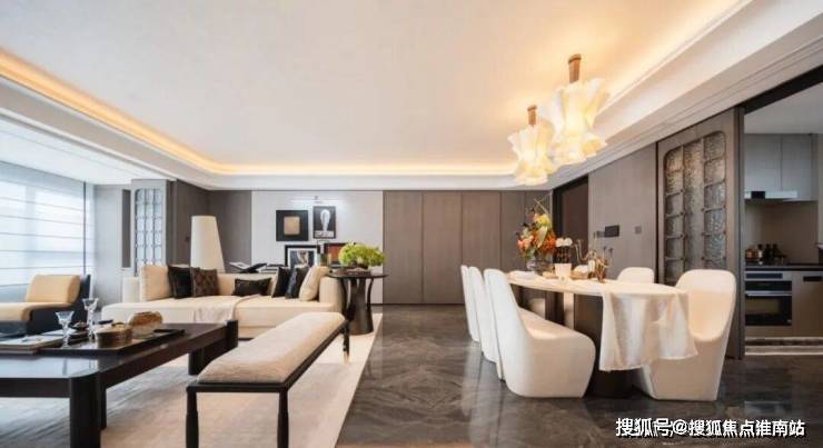 约5.95米大尺度横厅,媲美约200㎡+大平层的尺度感,看电影、玩游戏、朋友聚会…空间绰绰有余,海派都市的格调、时尚精致的质感四处萦绕.