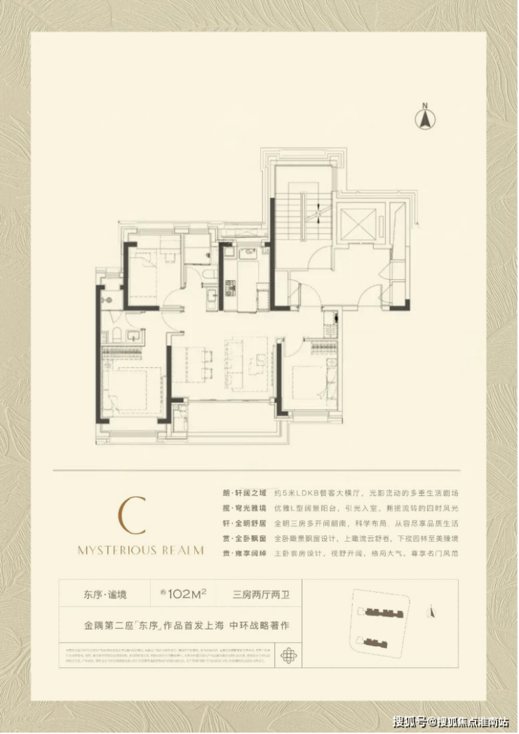 产品之一是建面约102平3房,3.5开间朝南,同面积段产品中罕见!拥有约5米面宽的LDKB超大横厅!奢阔尺度远超同级别产品!