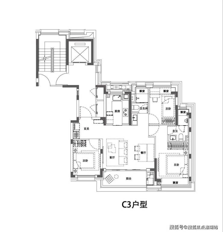 全卧瞰景飘窗设计+“独立”电梯厅,实用面积非常高!