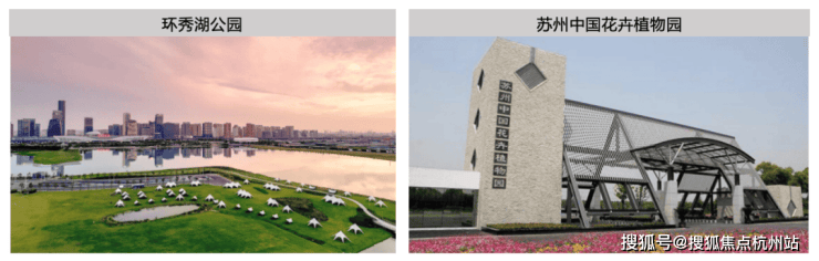 【城市绿肺 鲜氧环绕】 项目东侧市政规划公园、南侧北河泾生态体育公园(在建)、苏州环秀湖公园、苏州中国花卉植物园。
