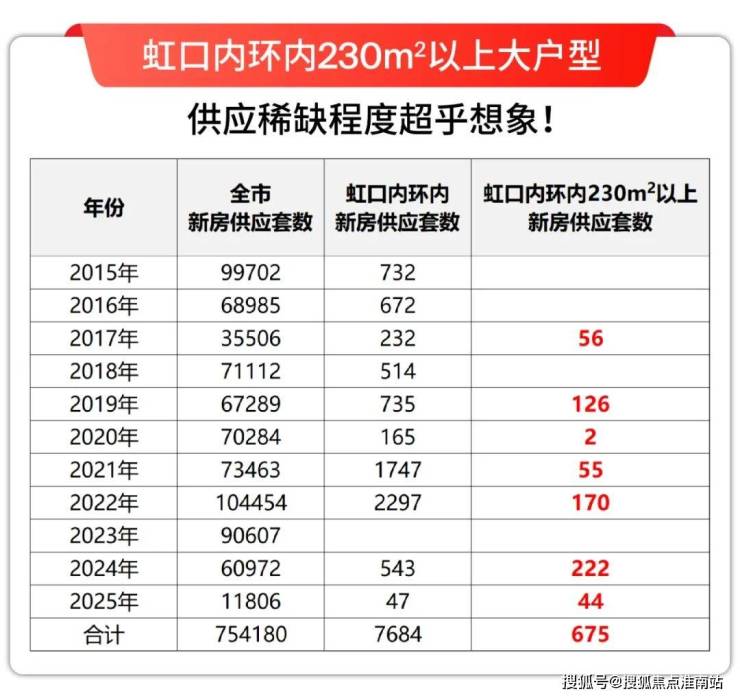 而虹口内环内建面约230㎡以上的改善户型供应套数要再缩减10倍,只有675套,占比总池子 约0.1%。堪称:10年难遇,千里挑一!