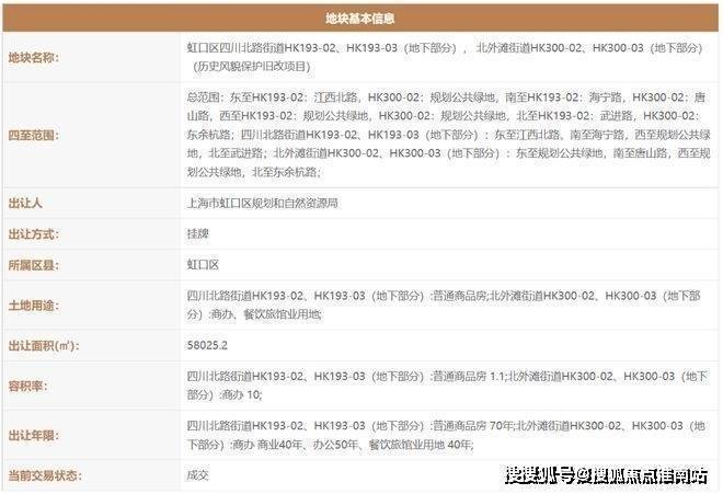2021年2月,上海虹口城市更新建设发展有限公司(上海地产联合体)以111.35亿拿下了虹口区四川北路街道HK193-02(17街坊弘安里)、HK193-03(地下部分);北外滩街道HK300-02、HK300-03(地下部分)(历史风貌保护旧改项目)