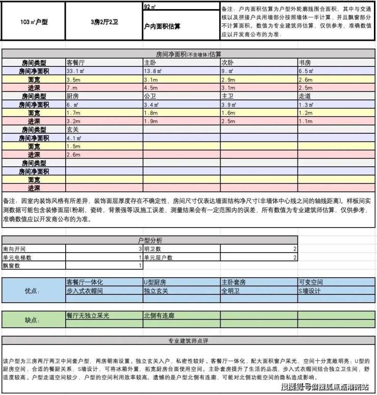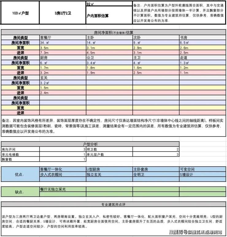 建面约103方A户型: