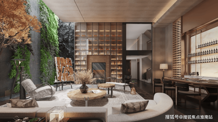 一进院:社区门口的6米宽瀑布景墙+落石+大乔组合,构筑起一道天然噪音屏障,进入瞬时隔离城市喧嚣!二进院:经过廊道,现代东方照明系统与景墙的组合,在光影变幻间呈现“移步换景”的归家仪式感!三进院:来到社区中央,18米宽的中心景观轴,搭配景观水池与疏密乔木,形成极简却又不失典雅气质的主景观花园!四进院:绿荫环绕的林下空间,为邻里交流提供惬意轻松的绿意场所!五进院:密植小乔合围的私密通道,配合定制石材院门,完成从公共到私域的过渡!1000平下沉式会所,安排了诸如健身房,私宴厅,四点半学堂,洽谈区等诸多功能,方便业主在这里安排社交活动。