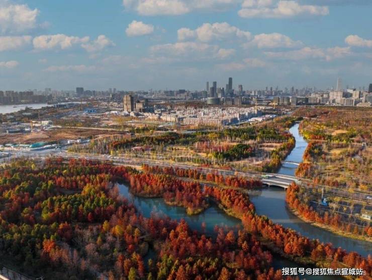 落日时可挽着爱人,一边漫步湖畔遛娃遛狗,一边看天边余霞成绮,湖中碎光点点,人与自然融为一体。
