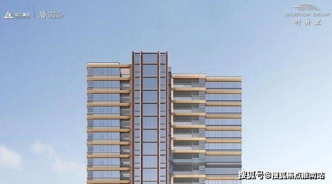 外立面以暗色调为主,搭配浅金色铝板与弧形线条,全封闭阳台计入一半面积。