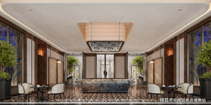 入户大厅作为整栋建筑的基座,借鉴了和平饭店的经典拱门。