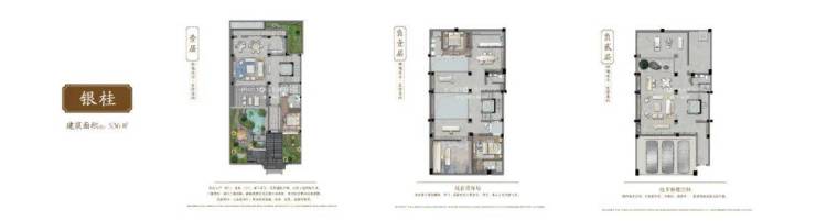 代表户型系列:银桂(约536㎡)、月桂(约607㎡)、金桂(约652㎡)、丹桂(约695㎡)、龙梅(约788㎡)