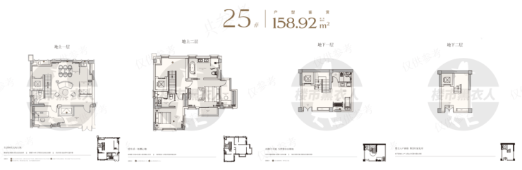 所有户型均做了大面宽短进深的设计(双拼面宽约13m、联排面宽约10m、叠加面宽约8m),确保了大尺度的空间格局。