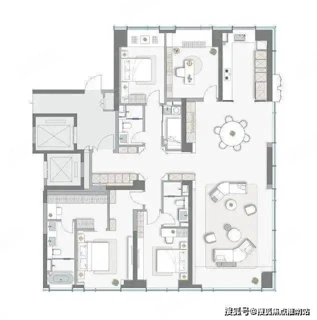 270㎡四房两厅三卫1150万楼王产品,配备独立家政间及国际收纳体系