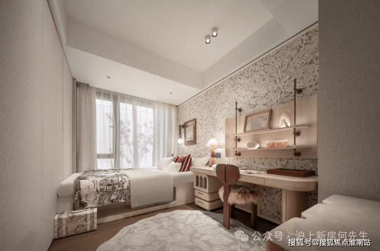 而这个北次卧不仅能放下一张完整的床,还能放下一张大尺寸的学习操作台或梳妆台,甚至还有空间做一些收纳柜和床头柜等。尺度感和实用性拉满!