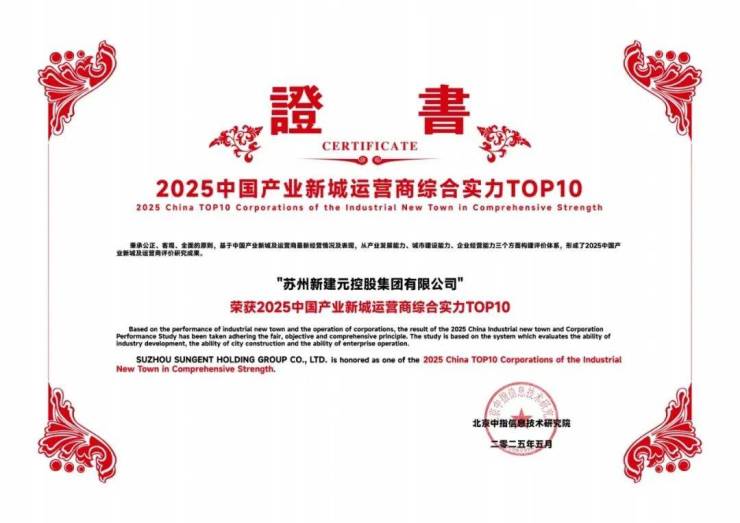 荣获:2025中国产业新城运营商综合实力TOP10。