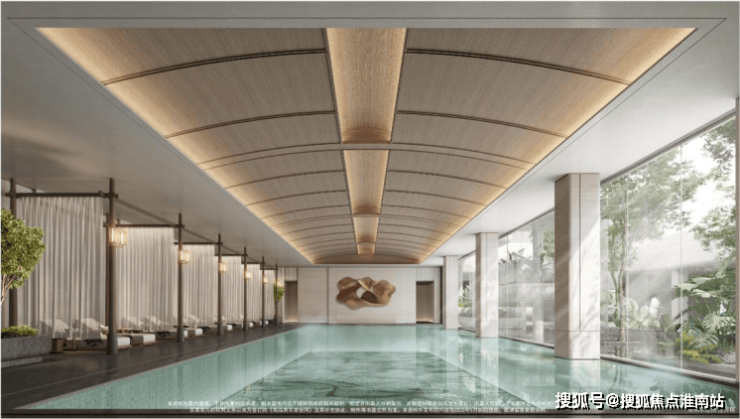 更让人惊喜的是,招商序将下沉式庭院与下沉式会所通过设计手法做了无界交融,招商序对于下沉式庭院进行了4层转角露台式的打造,通过跌水、露台与绿植的美妙点缀,使每一层都有独特的景观体验,而在下沉式会所中,可以一边健身、游泳一边享受窗外美景,非常惬意。