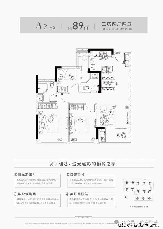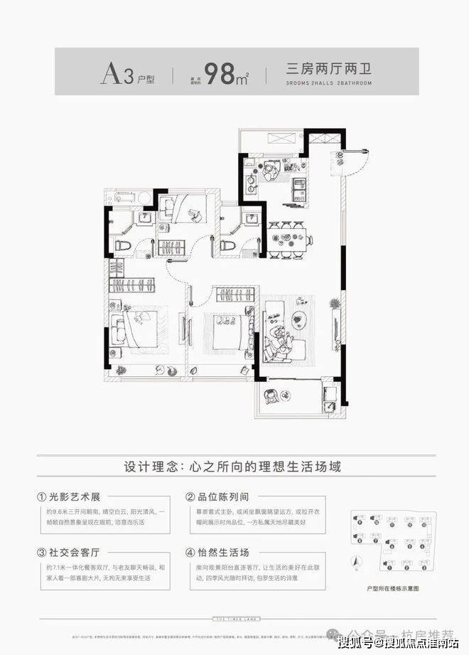 【面积段】:建筑面积约89-98㎡