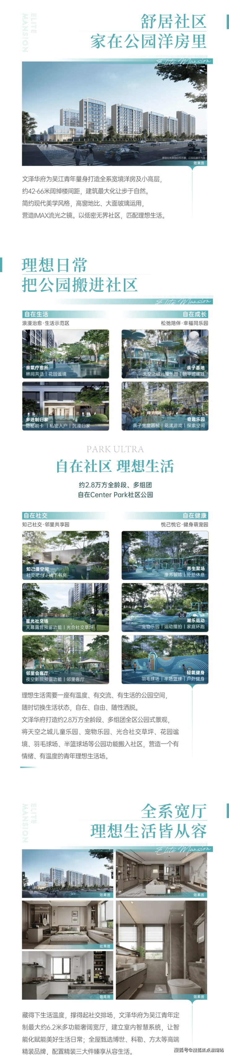 中建三局携手武汉联投置业、苏州湾集团,三国匠联袂,将国际前沿的城市公园生活理念凝练升华,融入POD前沿设计,即以便捷交通(TOD)+公园生活(PARK)双重引力为主导的都市生活方式,以洋房+小高层的组合,倾筑致献吴江青年的理想主义新作——文泽华府。