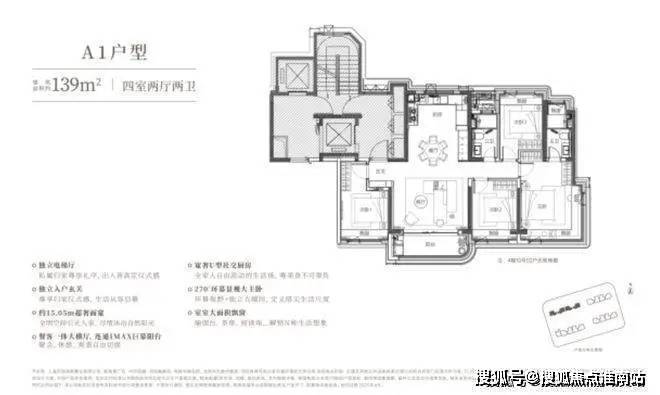 建面约 139 ㎡稀贵 4房,总价 约 1000万级 起