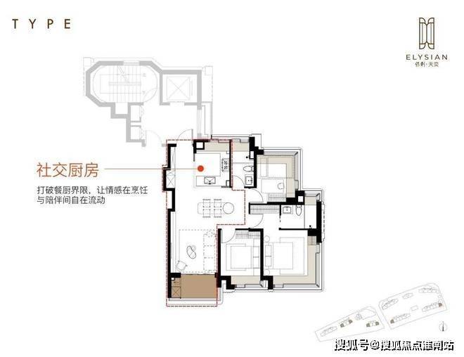 约270°飘窗除了打开全景舱视野,铺就大床之外,还可是私人观景台,还能承载猫咪慵懒的午后,更能成为收藏品、艺术品的摆台,打造多元生活场景。约100平3房利用半开放式厨房打造Social空间。