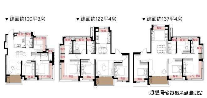 每个户型至少6个飘窗,边套更是约270°转角瞰景。