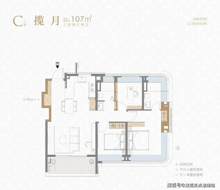 不夸张的讲,这个 建面约107㎡刷新了我对百平三房的新认知,据悉该户型或将申请专利,我认为实至名归!