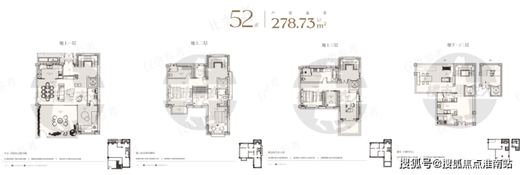 约239-280㎡联排别墅:总价约4500-6300万,私密性强,空间尺度优越;