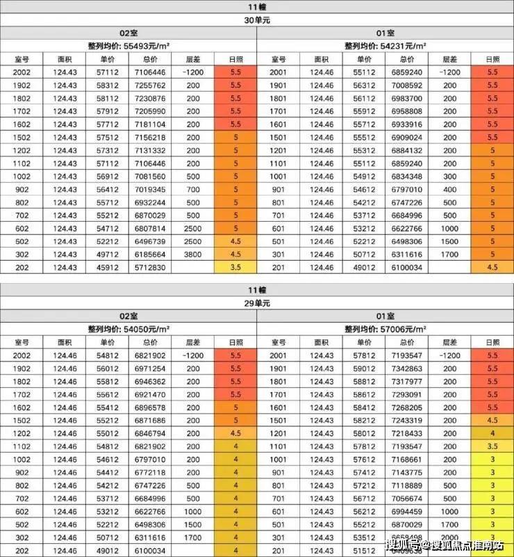 下图我将11号楼的楼层跳价和冬至采光时长做了结合,3点注意: