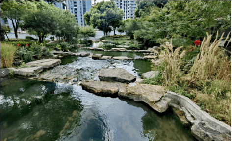 采用五重景观层层叠进,真石假山造景,承延墅区臻贵肌理的雅趣园林,引入自然河流,打造三面环水的滨水谧境,无界相融生态绿境,将社区、建筑、河流串联的相映成趣,自然围合,移步景异,营造极具魅力的惬意日常。