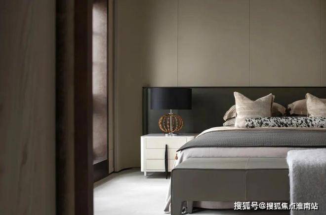 主卧空间充满着柔和的优雅氛围,铺设着温暖而柔软的牛皮地板,透过窗户射入的光线使整个房间显得温暖宁静,散发着恬淡的氛围。