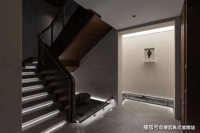 从底层到顶层,住宅空间采用了“大理石、木材、皮革”等主要材料,光线从暗转明再转暗,象征着房屋功能从“私人聚会、家庭聚会、生活休憩”等不同用途的转变。