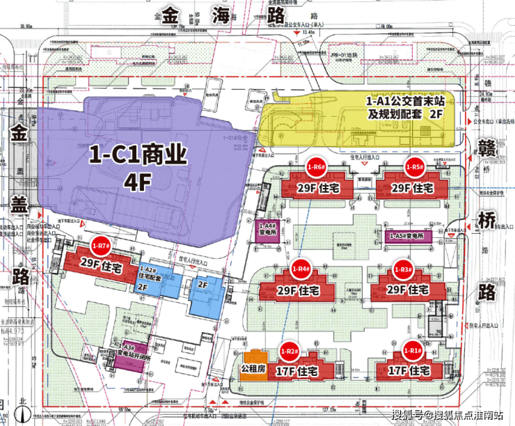 整个项目东至赣桥路(外环运河),南至桂桥路,西至金穗路,北至金海路,项目西侧就是由金桥集团开发的上海金湾!J9A-02地块:9、12号线地铁上盖,东侧是住宅部分,西侧是华为研发中心。该地块地上拟建设商业、酒店及酒店物业用房,其中,商业部分地上建筑面积36489.24㎡,酒店部分地上建筑面积20956.16㎡。