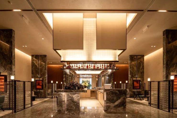 地面、墙面、吧台都用到石材,纹理和质感纤毫毕现;