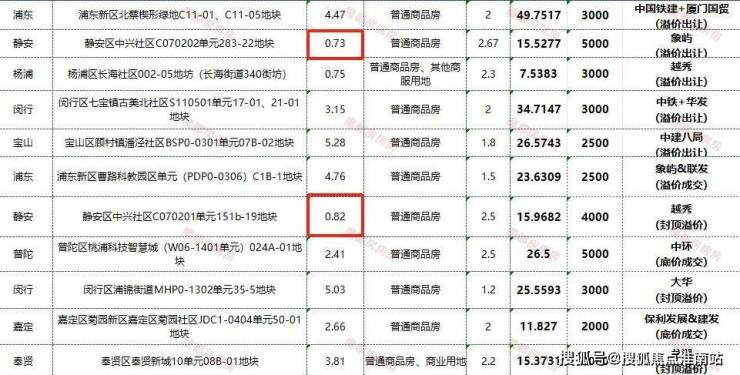 数据来源:上海土地交易市场2023年—2024年住宅用地出让清单