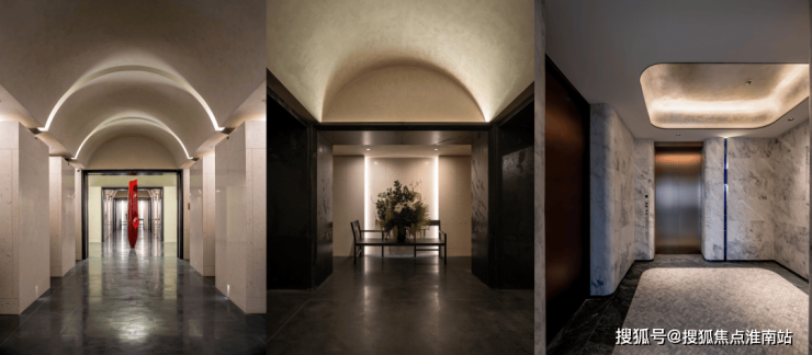 全实景展示的公区,做了 各式圆弧吊顶,配合艺术品的搭配点缀,让懂它的客户忍不住驻足欣赏。