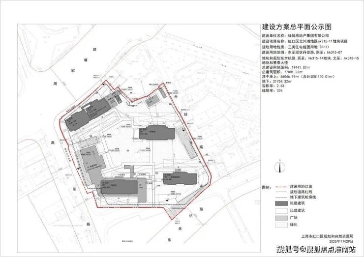 7月29日,北外滩地区hk315-11地块新建住宅项目设计方案公示;