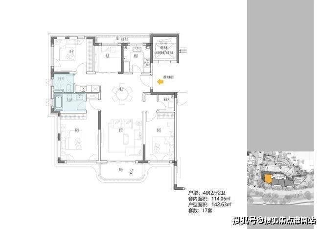 B地块,规划1栋17F住宅,建面约108-148m²高层;