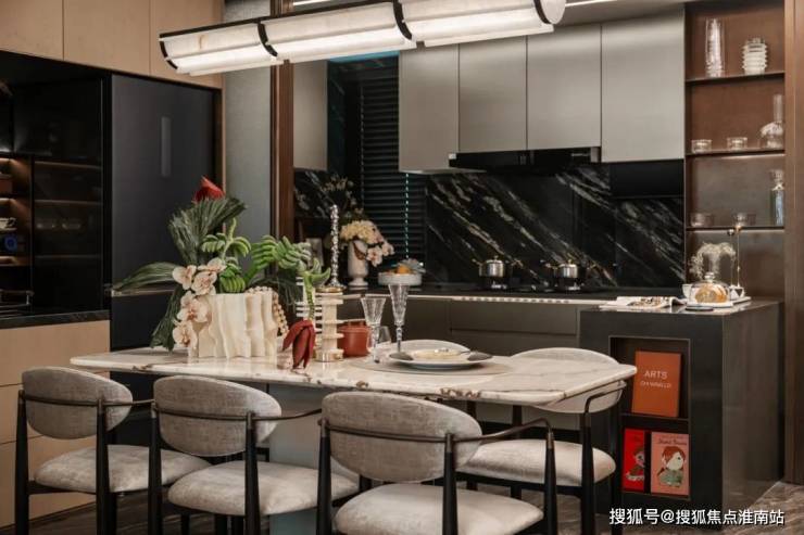 另外一方面,客卫的移位释放了大量的空间,放大了翎翠滨江餐厅、厨房,尺度感、通透性极强,并且做到了几乎0空间浪费。