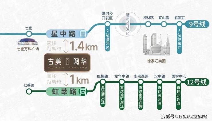 项目南向临近12号线虹莘路站,可以直达徐汇滨江、南京西路、苏河湾、北外滩、杨浦滨江等板块。