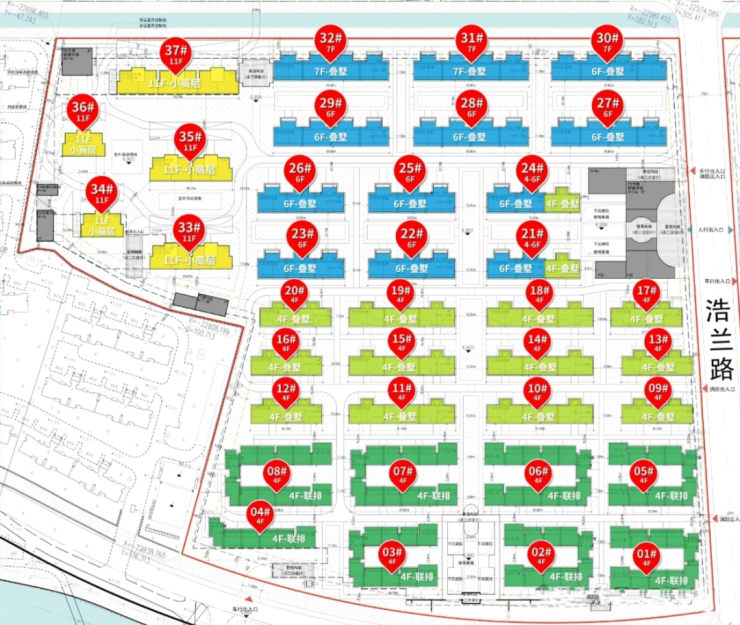 根据设计方案显示,02-09地块、03-04地块拟建55栋4-11F小高层/洋房/叠拼/合院产品!
